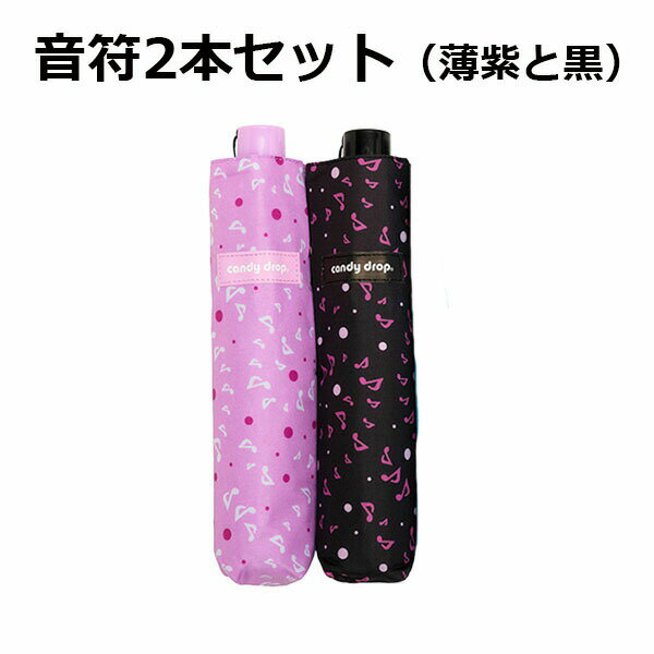 音符2本セット 傘 ウォーターフロントWaterfront キッズガール三つ折折りたたみ傘 子供 雨傘 親骨50cm KGG-3F50-UH-4T