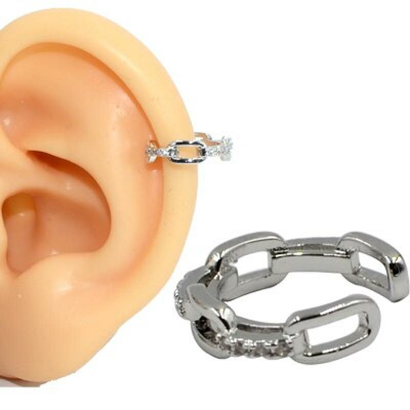 くさりにクリスタルのキュービックジルコニアを散りばめたキラキラのパベタイプのノンホールタイプのイヤーカフ。