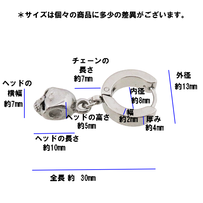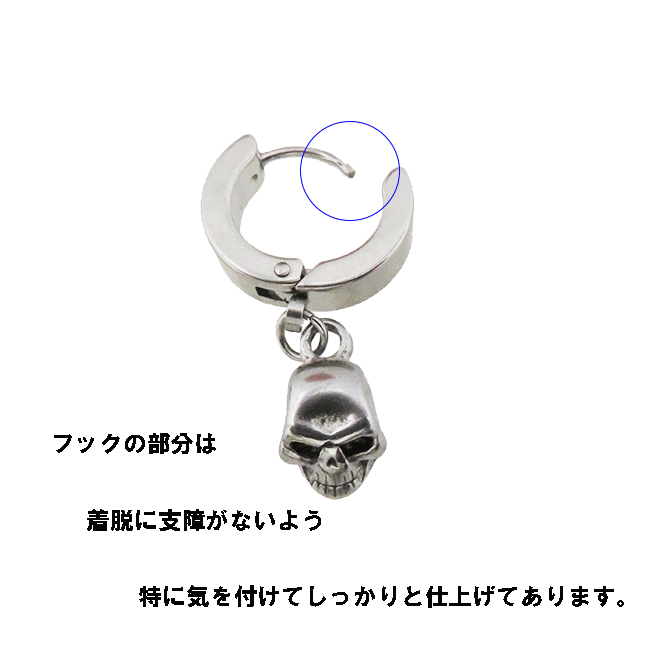 ドクロ/スカル フープピアス/リングピアス【13mm】サージカルステンレス/片耳売り /メンズアクセサリー/レディースアクセサリー/イヤリング