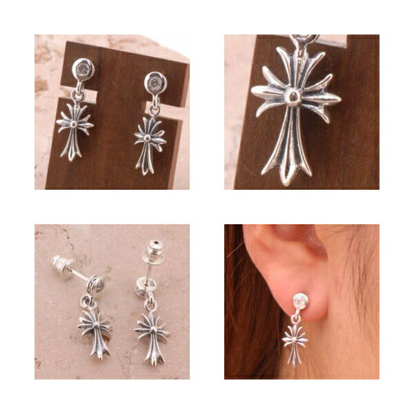 クロス ドロップピアス 2P 両耳用 ホワイトCZ ジルコニア ラウンド フレア ピアス イヤリング シルバー925 銀 シルバーアクセサリー メンズ レディース 男性 女性 アクセサリー ギフト プレゼント おしゃれ