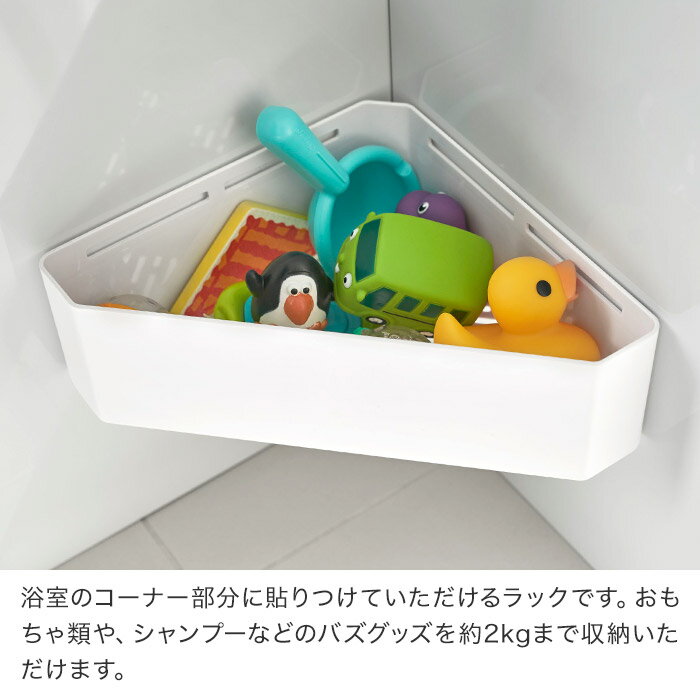 散らかりがちなおもちゃやバスグッズをスッキリ収納できる「マグネットバスルーム コーナーおもちゃラック」です。