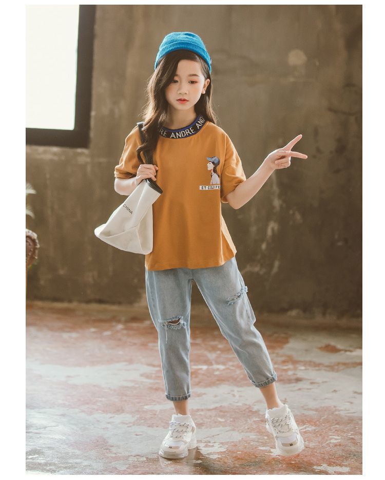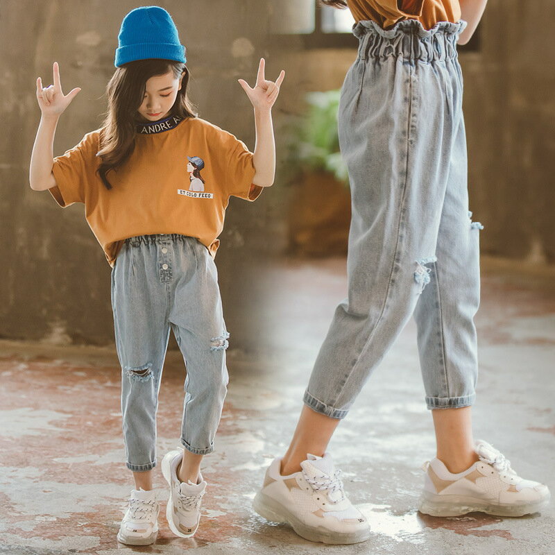 ハイウエストデザインのおしゃれなキッズ用9分丈デニムパンツです。
