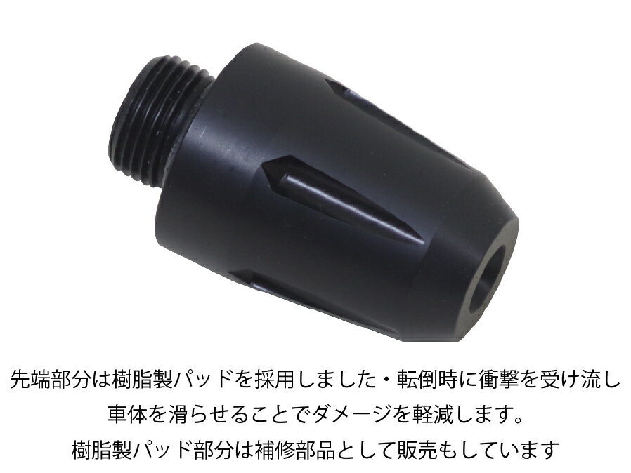 転倒時に衝撃を受け流し車体を滑らせることでダメージを軽減します。